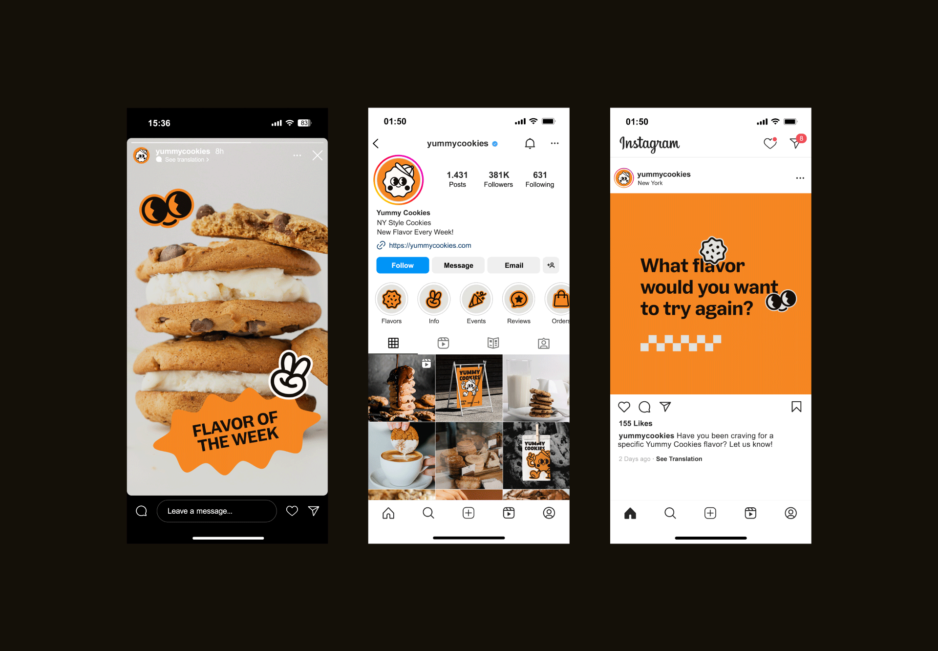The Branding was thought to reflect the brand's dynamic and fun approach, choosing to sport a cookie mascot. The mascot is walking in a relaxed fashion, showing the laydback vibe of the brand.